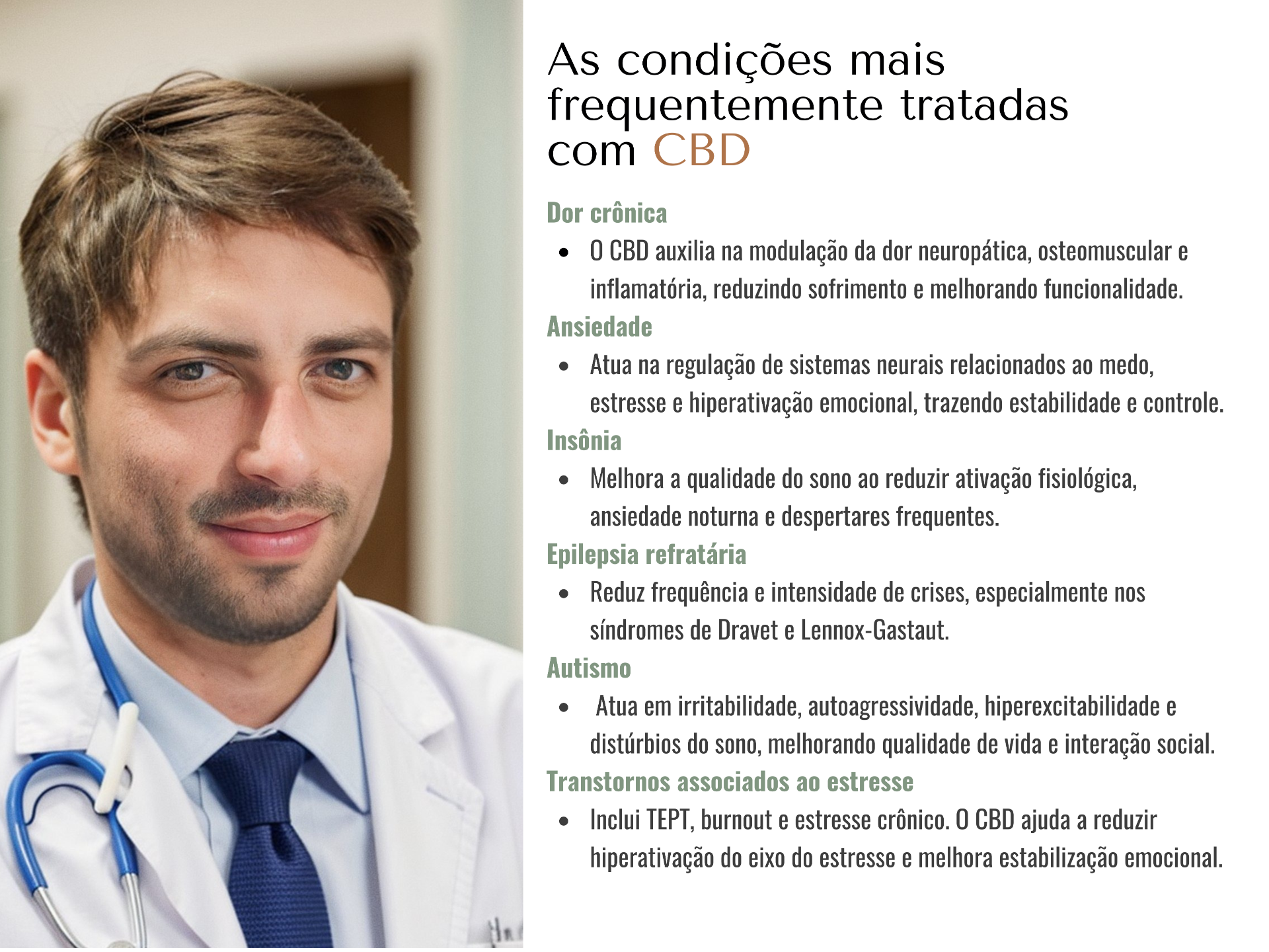 Seu uso é terapêutico, com foco em dor, ansiedade, sono, inflamação, epilepsia e outras condições clínicas.